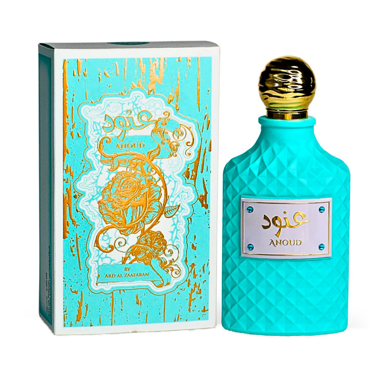 Ard Al Zaafaran Anoud EDP 100ML é uma fragrância unissexo da família olfativa floral marinha amadeirada, lançada em 2024. Apresenta uma abertura fresca marinha com neroli e flor de cacto, evolui para um coração floral de jasmim, magnólia e nardo, e assenta numa base quente de âmbar, patchouli, cashmeran e açúcar mascavo. Aroma sofisticado e envolvente, ideal para dias quentes e ocasiões à noite