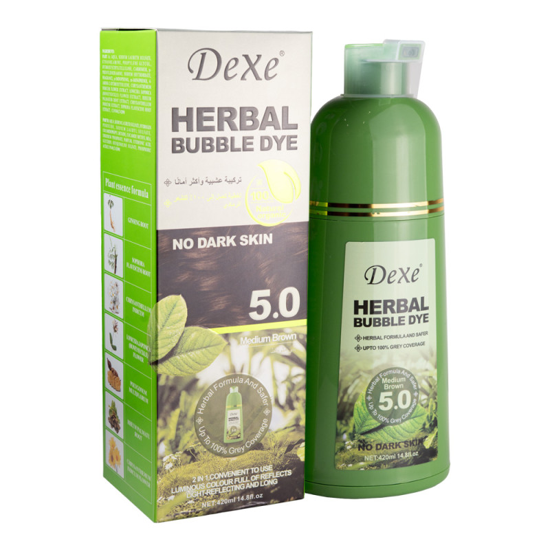 Tinta capilar em espuma herbal — desenvolvida para cobrir fios brancos e proporcionar cor castanho médio natural de forma rápida e uniforme.
