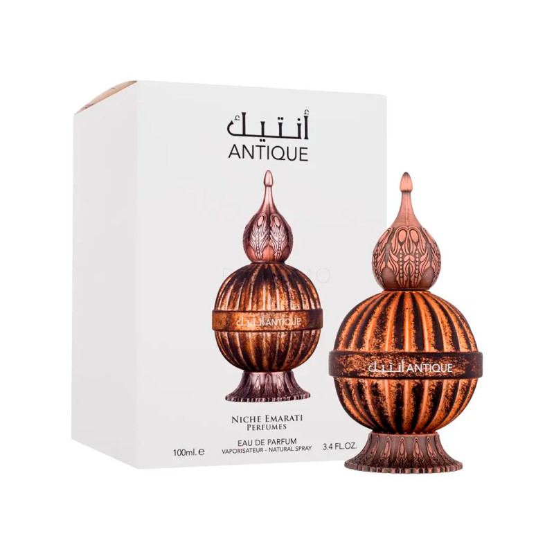 Lattafa Niche Emarati Antique Eau de Parfum 100 ml é uma fragrância unissex da família olfativa doce picante que combina notas cremosas, picantes e amadeiradas para uma experiência sensorial única. Abre com uma mistura rica de cardamomo, figo, coco, leite e chá preto, proporcionando uma entrada suave e reconfortante. No coração, íris, vetiver e jasmim conferem elegância e profundidade. A base, composta por âmbar, sândalo, feijão tonka, caramelo e almíscar, deixa um rastro quente e envolvente. Ideal para ocasiões especiais e uso noturno em climas amenos.