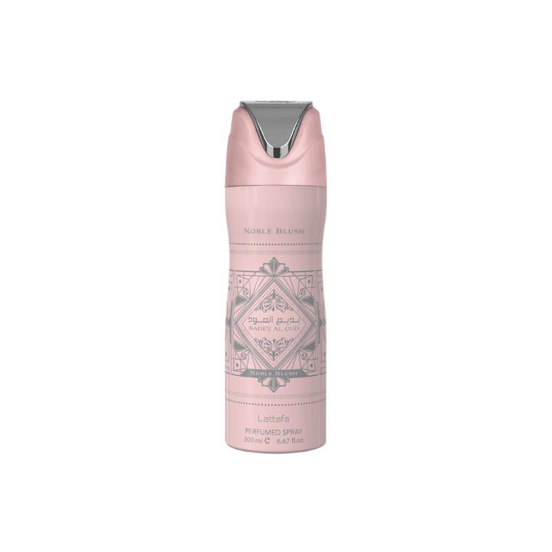 Desodorante corporal em spray inspirado na fragrância Badee Al Oud Noble Blush da Lattafa. Proporciona frescor imediato, controle de odores e um aroma floral doce, cremoso e sofisticado com toque gourmand elegante.
