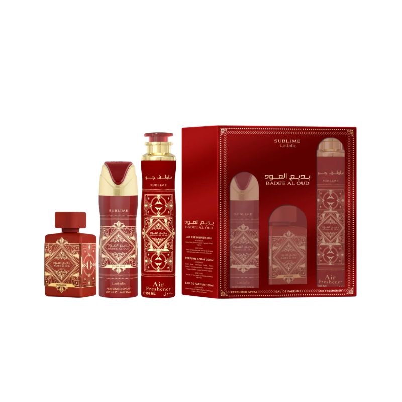 Kit de presente — inclui Eau de Parfum (EDP) 100ML + desodorante + aromatizador de ambiente, ideal para uso pessoal e perfumar ambientes.