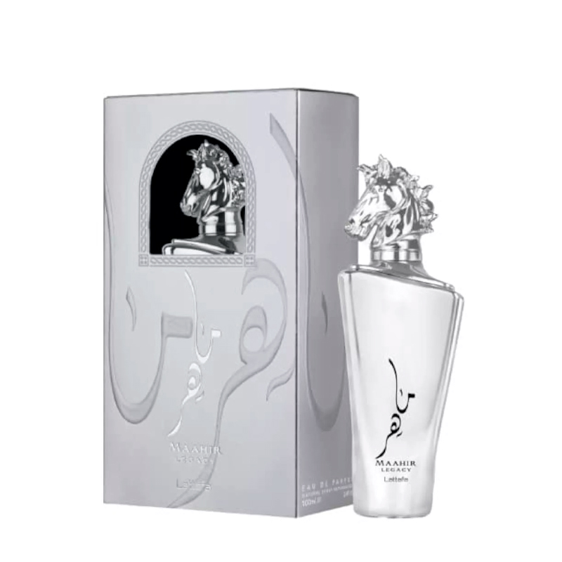 Maahir Legacy de Lattafa Perfumes é uma fragrância da família olfativa masculina - As notas de topo são Limão tahiti, Hortelã, Toranja, Lavanda e Abacaxi. - As notas de coração são pimenta preta, zimbro, alecrim, gerânio e incenso - As notas de base são ambroxan, musgo de carvalho, vetiver, fava tonka e caxemira