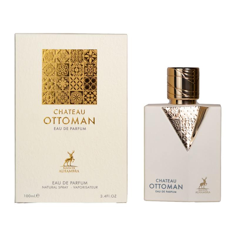 Maison Alhambra Chateau Ottoman Eau de Parfum 100 ml é uma fragrância unissex da família olfativa oriental-amadeirada, inspirada na sofisticação e no luxo clássico do Império Otomano. O perfume combina uma abertura picante e aromática com um coração floral quente e uma base rica em madeiras nobres e âmbar, oferecendo presença marcante, elegância e longa duração.