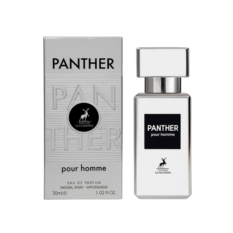 MAISON ALHAMBRA PANTHER POUR HOMME 30ML EDP é uma fragrância masculina da família olfativa amadeirada aromática, lançada em 2022. Esta essência combina notas cítricas, florais e amadeiradas, criando uma experiência olfativa sofisticada e envolvente.